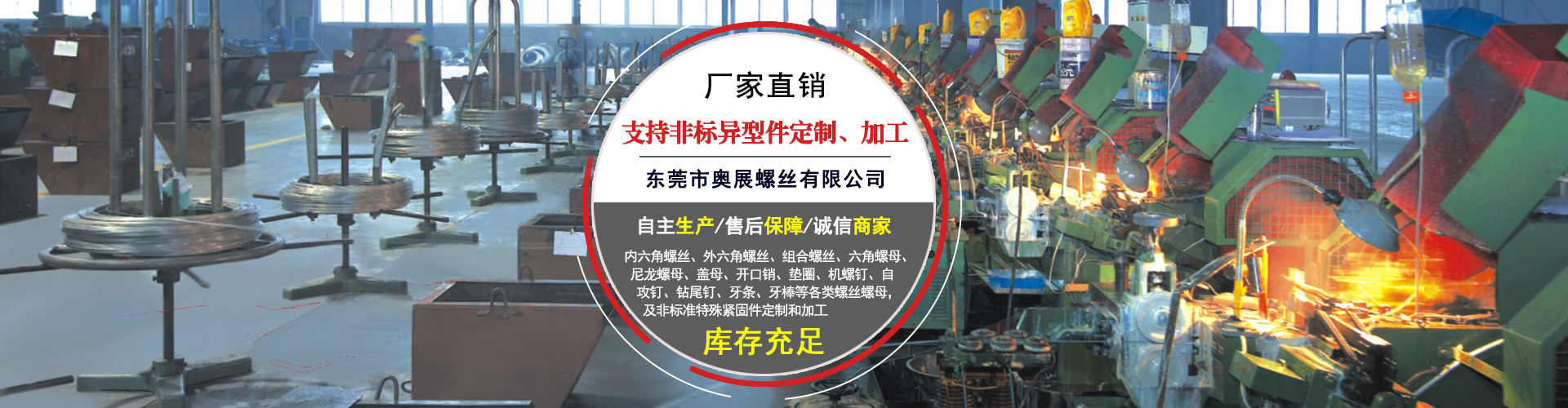奧展公司是一家集生產、加工、銷售、服務為一體的大型專業緊固件國家高新技術企業,專業各類高品質螺絲、螺母等精密緊固零部件供應商,公司自成立以來憑借長期經營管理經驗及雄厚的實力,承接各種非標定制。